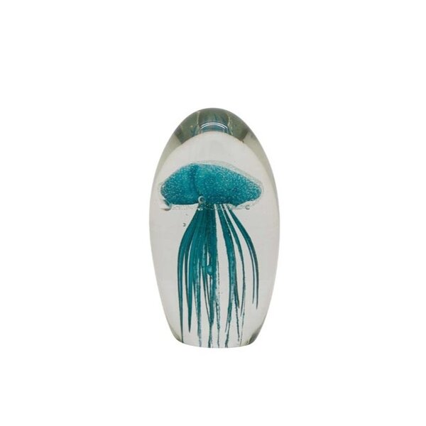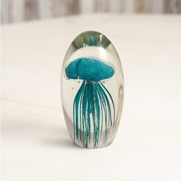 Briefbeschwerer aus mundgeblasenem Glas mit einer farbigen Qualle. Massives Glasobjekt.