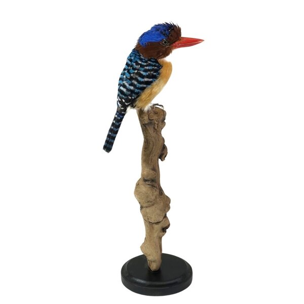 Eleganter präparierter Wellenliest. Das Gefieder dieses Männchens hat eine schöne tiefblaue Farbe mit den charakteristischen schwarzen Streifen, die dieser Art ihren Spitznamen 'Zebra-Eisvogel' geben.