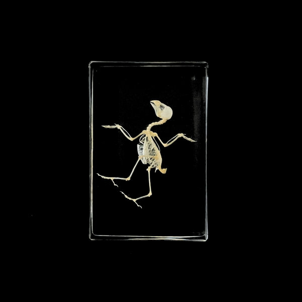 Vogel in klarem Harz, sorgfältig präpariert mit sichtbarem Federmuster und Form. Ein einzigartiges und lehrreiches Objekt für Naturliebhaber und Sammler.