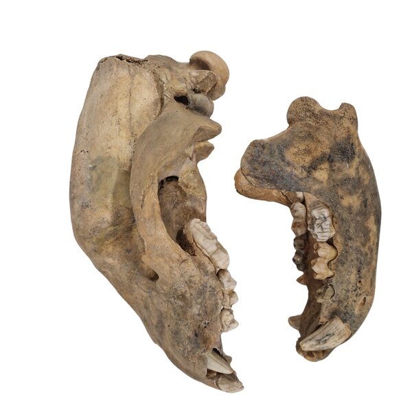 Magnificent skull of a cave bear. Dated about 20,000 years old and about 15% restored.