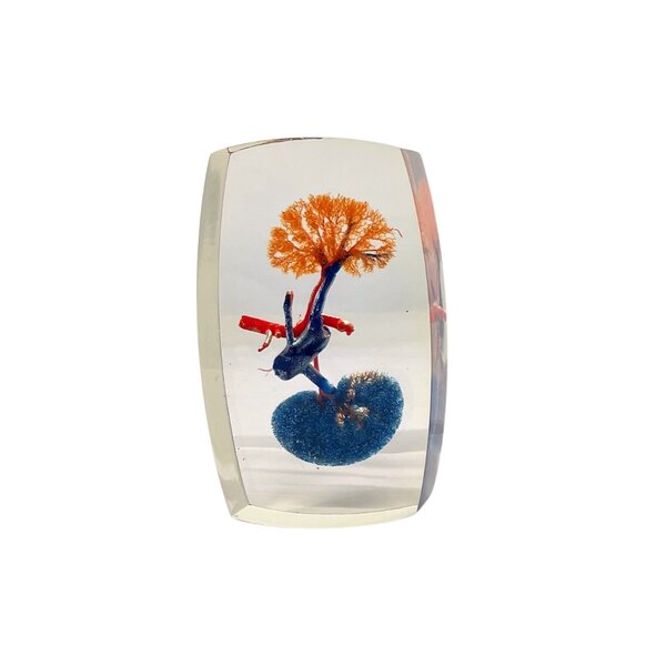 This special specimen shows the vascular system of a fox's kidneys, made visible by means of a corrosion cast. In this preparation technique, the network of blood vessels is filled with a special resin, after which the surrounding tissue is dissolved. What remains is a detailed three-dimensional impression of the vascular system.