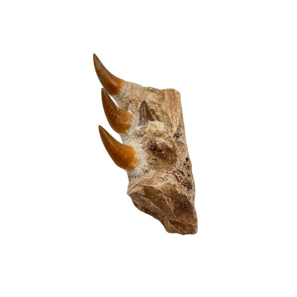 This jaw is from a Mosasaurus, a large predatory marine reptile that lived in the Cretaceous, around 70 million years ago. Related to lizards and snakes, it hunted fish and other marine animals in shallow seas.