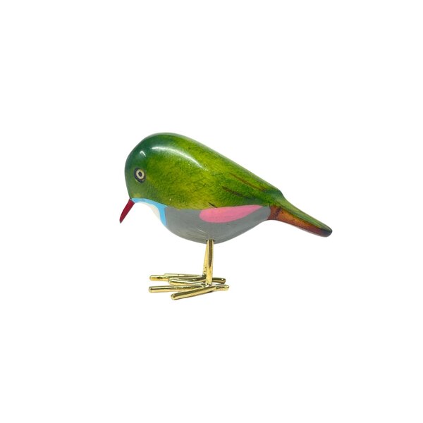 Handgesneden uit jacarandahout en handgeschilderd vogelbeeldje, uniek vervaardigd door onafhankelijke Afrikaanse kunstenaars.