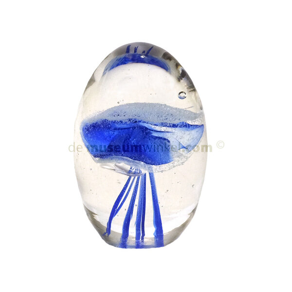 Presse papier met een glas geblazen kwal, gemaakt van massief glas.