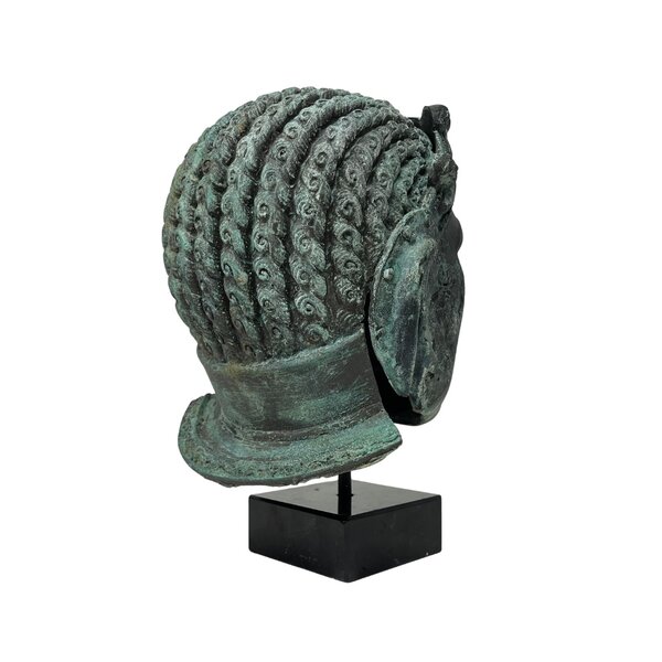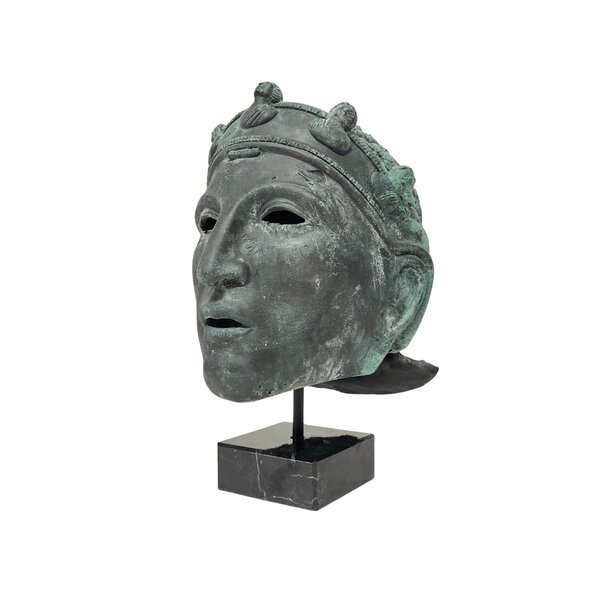 Gebaseerd op een Romeins gevechtsmasker uit de 1e eeuw na Christus, dat bij opgravingen in de Waal werd ontdekt. Vandaag de dag is het originele masker te bewonderen in Museum Het Valkhof, dit object brengt dat erfgoed naar je eigen huis. Het Romeinse ruitermasker werd waarschijnlijk als offer in de Waal gelegd, een gebruikelijke rituele praktijk om de goden te eren of bescherming te vragen.