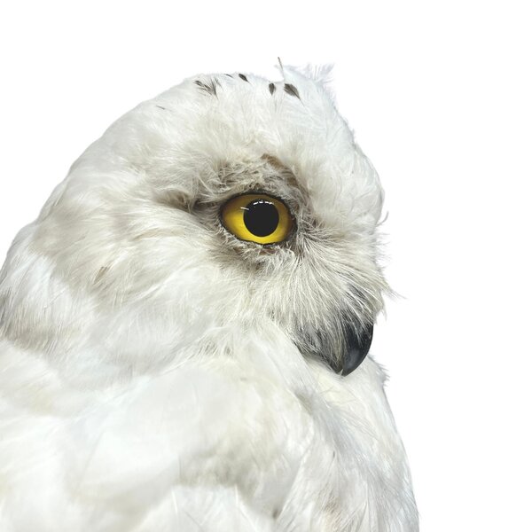 De sneeuwuil is een uil met een grootte van zo'n 53-66 cm. De soort heeft een ronde kop met een eigenaardige katachtige uitdrukking. Ze produceren grote braakballen die een lengte kunnen hebben tot 12 cm, met een doorsnede van 3,5 cm. Het zijn door de grote stukken botten die er in zitten onregelmatig gevormde braakballen, die los samen gedrukt zijn.